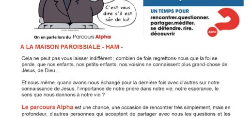 - un temps de prière le premier vendredi du mois de 10h à 11h15 : un temps pour prier suivi d’un temps pour échanger autour d’un café à la maison diocésaine. Le détail est ici.