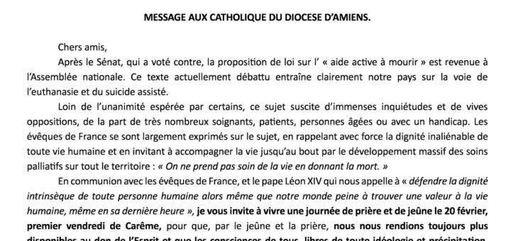 La Conférence des évêques de France prend acte du vote solennel intervenu le 25 février 2026 en faveur des propositions de loi relatives à « l’accompagnement et aux soins palliatifs » ainsi qu’à «...